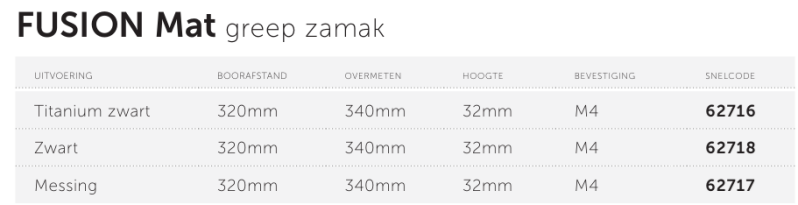 En ook als bijpassende knop FUSION MAT leverbaar.