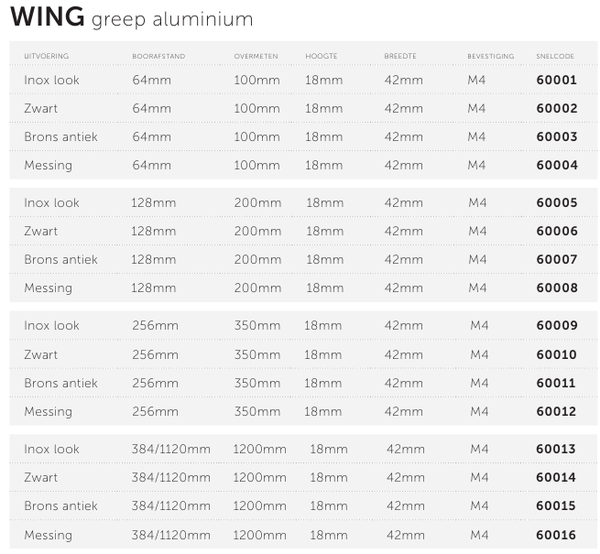 Leverbaar in de boormaten 64, 128, 256 en 384/1120