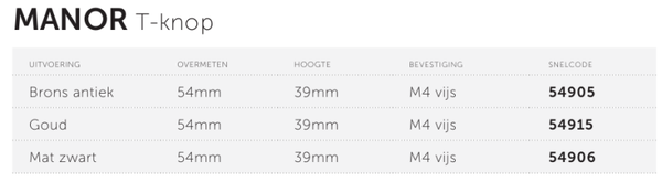 Ook leverbaar in de kleuren brons antiek en mat zwart
