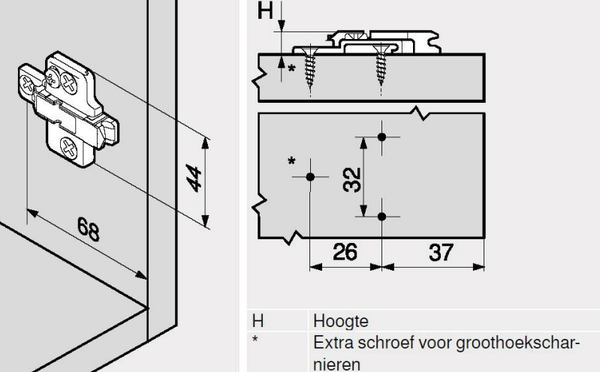 Blüm kruismontageplaat hoogte 0, 3, en 9 mm om te schroeven