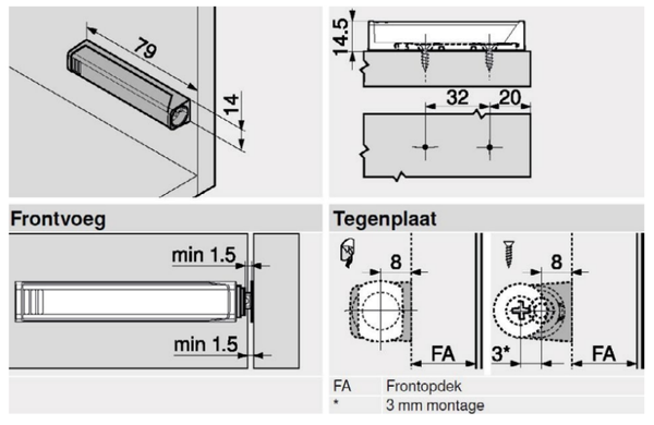 Nieuwe versie TIP-ON stiften voor scharnierdeuren met volgende eigenschappen: