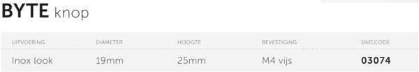 Materiaal: Zamak/aluminiumAfwerking: Inox lookIn 1 maat leverbaar
