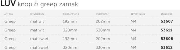 Ook verkrijgbaar in mat zwart En als bijpassende knop LUV leverbaar