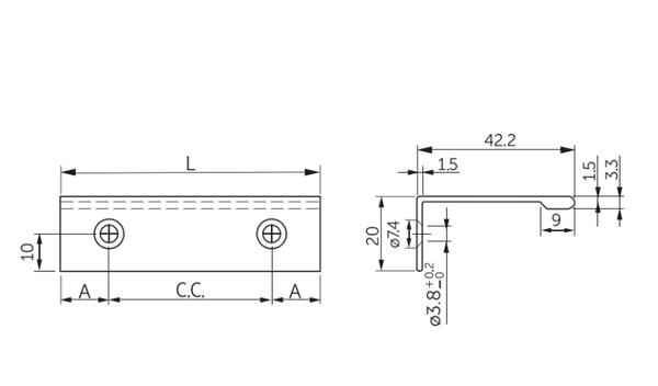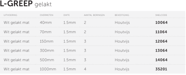 Leverbaar in de lengtes:40, 70, 150, 300, 500 en 1000 mm
