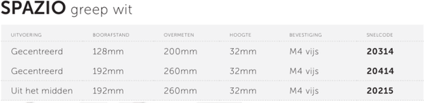 Leverbaar in de boormatenmet greep in het midden:128 en 192 mm