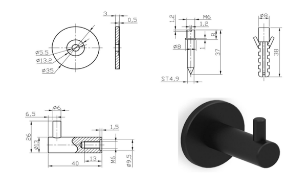 Materiaal: Aluminium/ZamakAfwerking: Zwart, inox look en goud