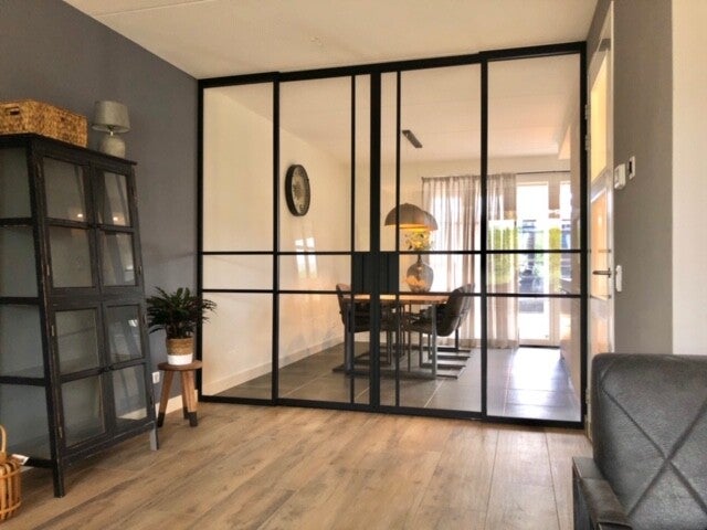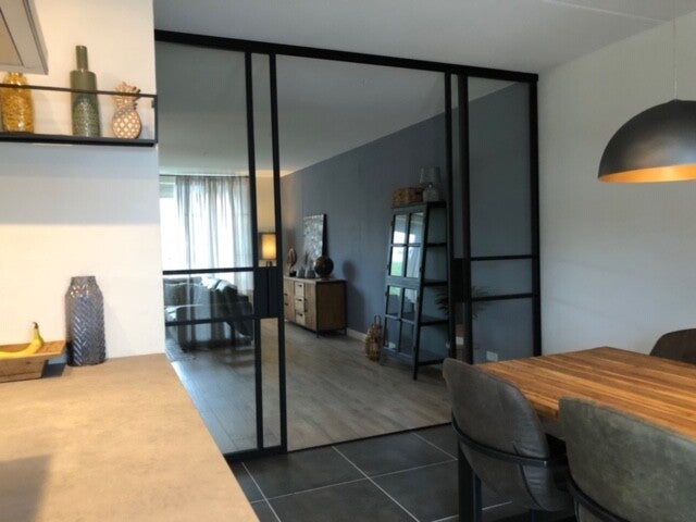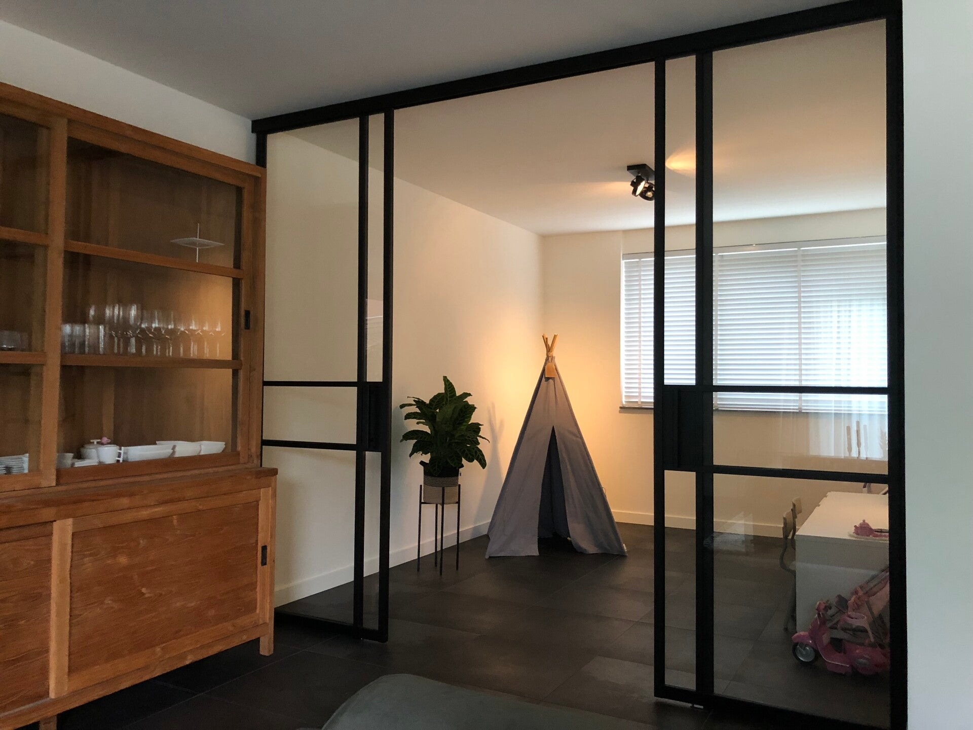De vaste wanden staan op de vloer naast de schuifdeuren.