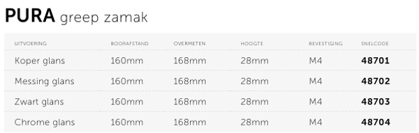 Ook verkrijgbaar in koper glans, zwart glans en chrome glans