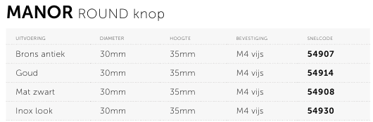 Ook leverbaar in de kleuren inox look, goud en mat zwart