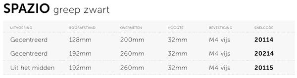 Leverbaar in de boormatenmet greep in het midden:128 en 192 mm