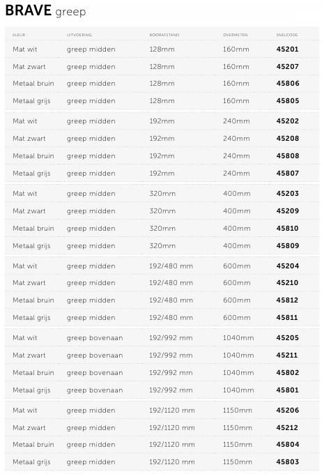 Ook verkrijgbaar in mat wit, metaal bruin en metaal grijs