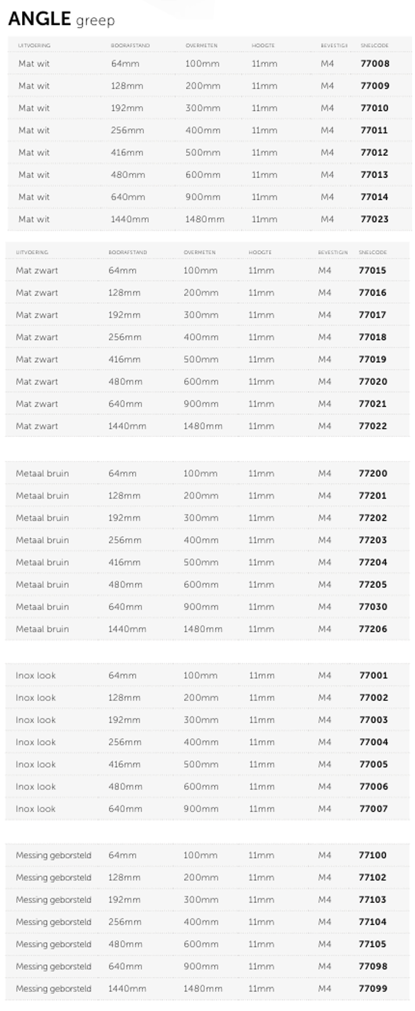 Ook verkrijgbaar in inox look, mat wit, mat zwart en messing geborsteld