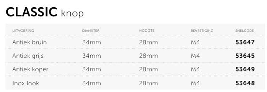 Ook leverbaar in antiek grijs, antiek koper en inox look