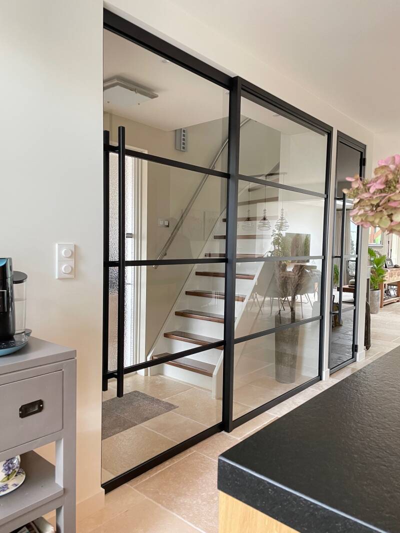 Steel look metalen schuifdeuren combineren een strak design met functionele elegantie.